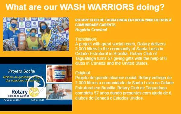 Com esta visibilidade, nosso Clube se destaca internacionalmente, por este importante e valoroso projeto de subsídio Global que entregou 2.000 filtros para a comunidade carente da Santa Luzia na Estrutural DF.