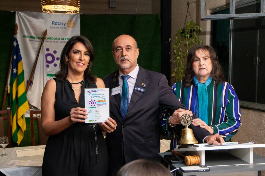A cerimônia foi presidida pela nossa Vice-Presidente, Fabiane Gontijo, que representou nosso presidente, João Rufino Junior. Na ocasião também foram entregues certificados de reconhecimento a empresas locais que são parceiras do nosso clube em projetos humanitários e de empresas que também se envolvem, direta ou indiretamente, em projetos sociais.