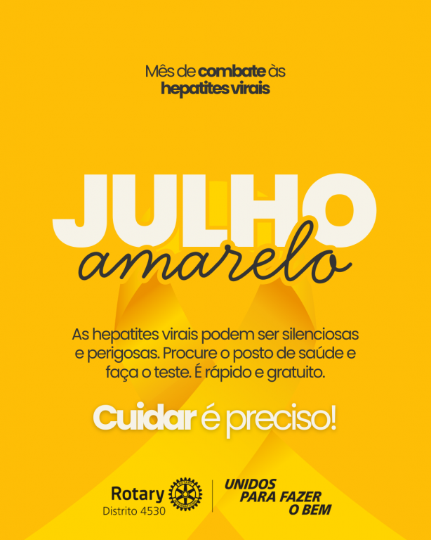 O Rotary International e os clubes que compõem o Distrito 4530, que abrange o Distrito Federal, grande parte de Goiás e o estado do Tocantins, apoiam e desenvolvem ações que reforçam a importância da informação, do cuidado com a saúde e do acesso à testagem e vacinação. Por muitos anos, em parceria com a Associação Brasileira dos Portadores de Hepatite (ABPH), muitos dos nossos clubes realizaram ações de testagens rápidas em suas cidades, encaminhando pessoas para o tratamento precoce da doença.