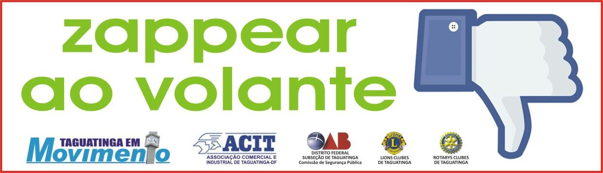 A Associação Comercial e Industrial de Taguatinga - ACIT, em parceria com a Ordem dos Advogados do Brasil – OAB Comissão de Segurança da Subseção de Taguatinga, os Lions Clubes de Taguatinga, os Rotarys Clubes de Taguatinga e um grupo de lideranças da cidade denominado Taguatinga em Movimento, com o apoio da Etitec e Justo Malhas, vão realizar uma Campanha de Conscientização dos perigos do uso do celular ao volante.