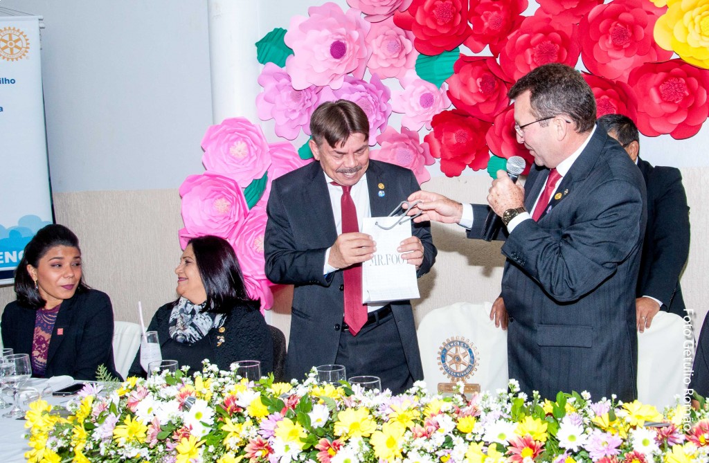 Carlos Alberto de Lima Soares passou a presidência do Rotary , Gestão 2017/2018 para Nesildo Ribeiro de Farias Filho e Maria de Fatima Silva Soares entregou a presidência da Casa da Amizade Gestão 2017/2018 psrs Leila Rocha Viana Farias.